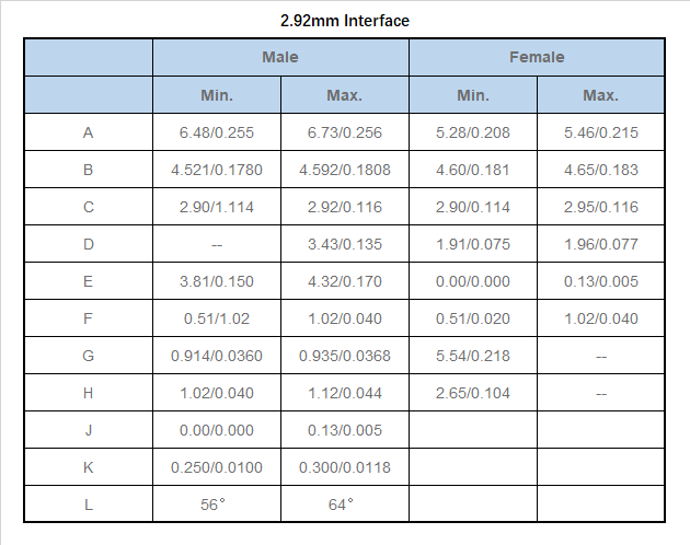 • The 2.92mm interface dimensions conform to the following standards:
